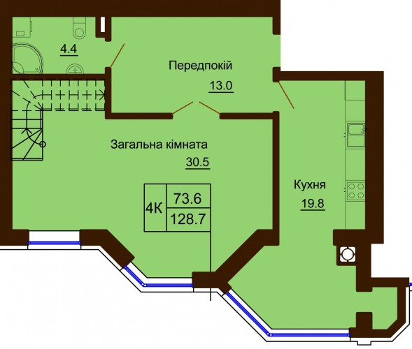 ДВОРІВНЕВА КВАРТИРА 128.70 М/КВ