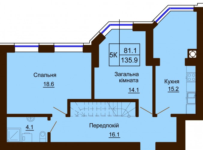 ДВОРІВНЕВА КВАРТИРА 135.90 М/КВ