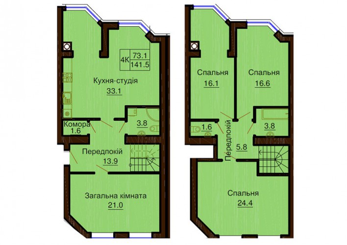4 кімнат