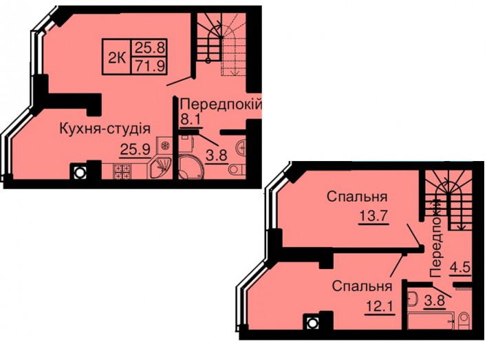 ДВОРІВНЕВА КВАРТИРА 71.90 М/КВ