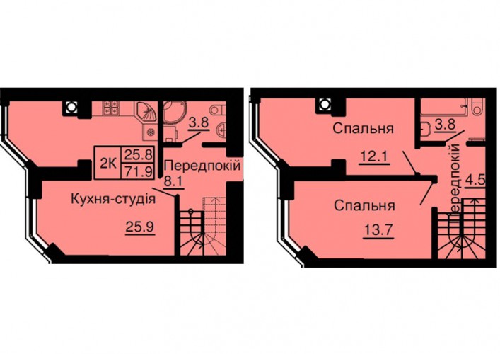 ДВОРІВНЕВА КВАРТИРА 71.90 М/КВ