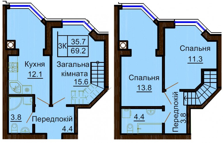 ДВОРІВНЕВА КВАРТИРА 69.20 М/КВ