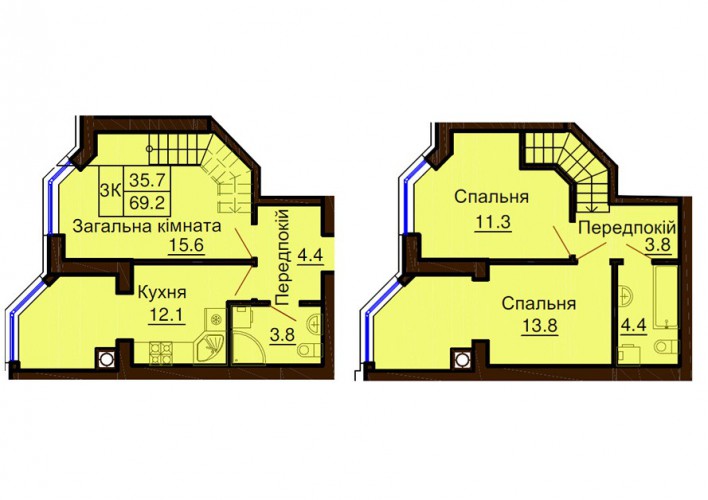 ДВОРІВНЕВА КВАРТИРА 69.20 М/КВ