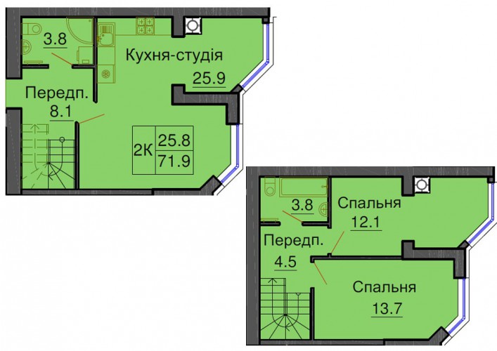 ДВОРІВНЕВА КВАРТИРА 71.90 М/КВ