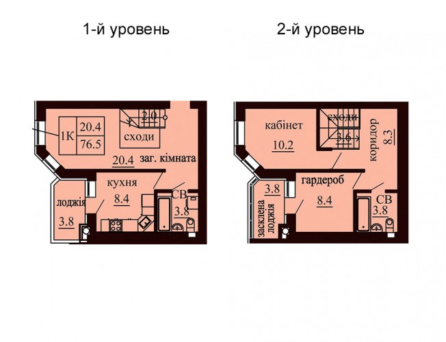 ДВОРІВНЕВА КВАРТИРА 76.50 М/КВ