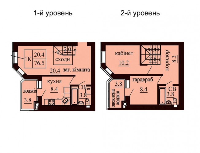 ДВОРІВНЕВА КВАРТИРА 76.50 М/КВ