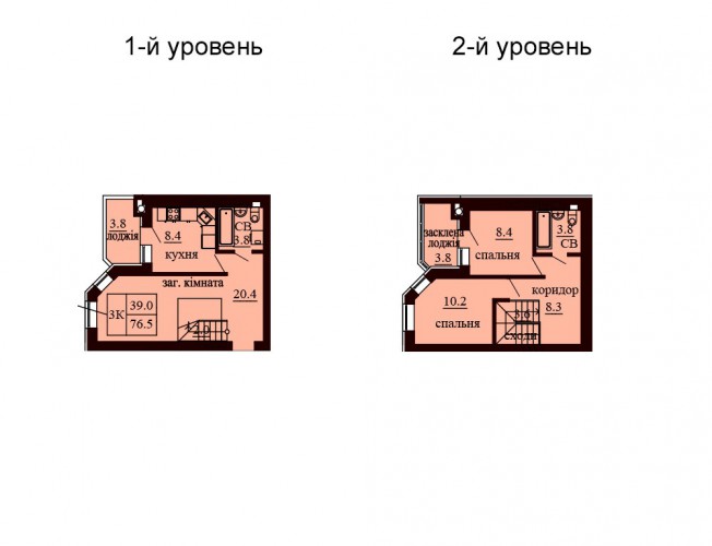 ДВОРІВНЕВА КВАРТИРА 76.50 М/КВ