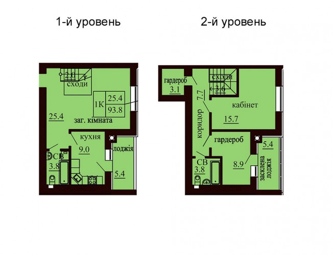 ДВОРІВНЕВА КВАРТИРА 93.80 М/КВ