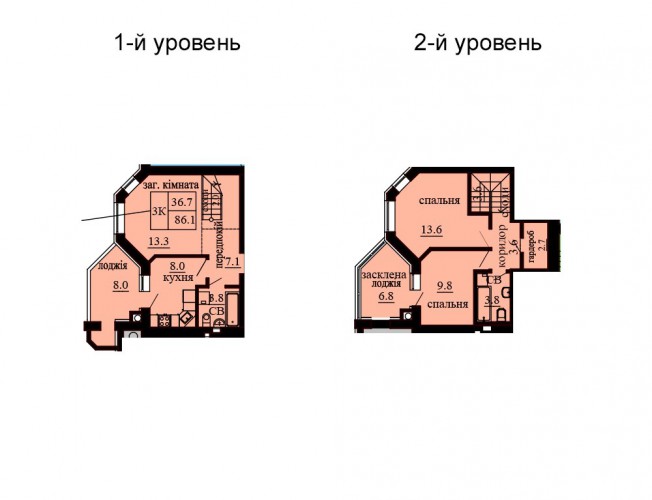 ДВОРІВНЕВА КВАРТИРА 86.10 М/КВ