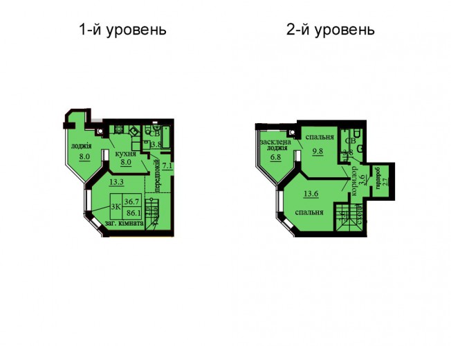 ДВОРІВНЕВА КВАРТИРА 86.10 М/КВ