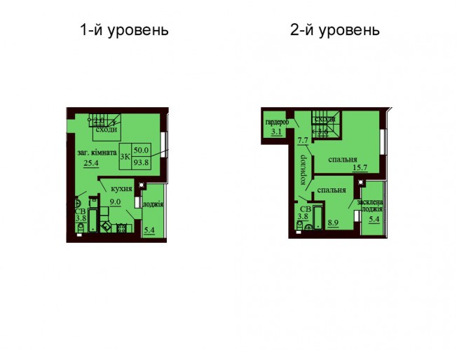 ДВОРІВНЕВА КВАРТИРА 93.80 М/КВ