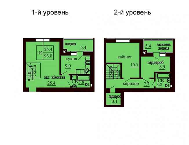 ДВОРІВНЕВА КВАРТИРА 93.80 М/КВ