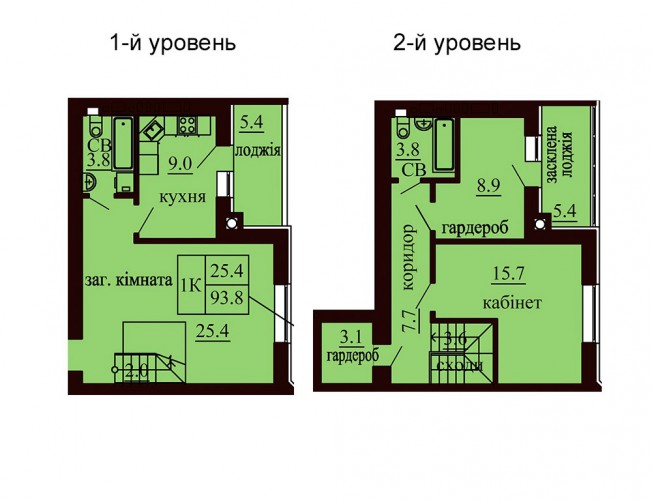 ДВОРІВНЕВА КВАРТИРА 93.80 М/КВ