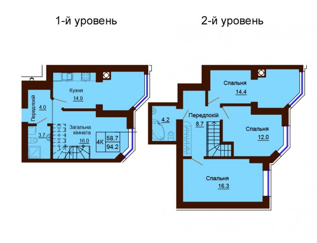 ДВОРІВНЕВА КВАРТИРА 94.20 М/КВ