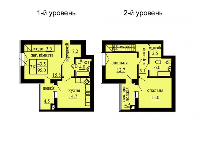 ДВОРІВНЕВА КВАРТИРА 95.00 М/КВ