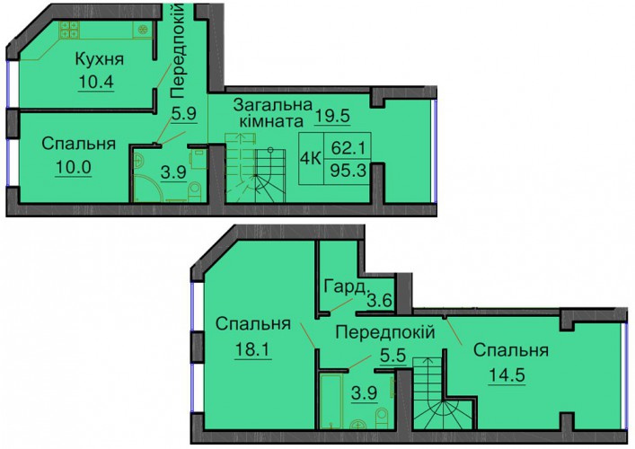 ДВОРІВНЕВА КВАРТИРА 95.30 М/КВ