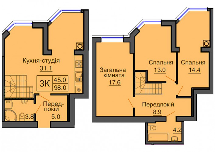 ДВОРІВНЕВА КВАРТИРА 98.00 М/КВ