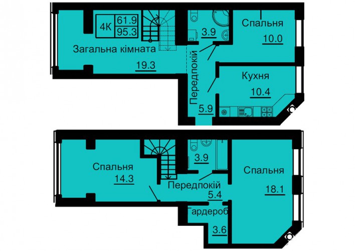 ДВОРІВНЕВА КВАРТИРА 95.30 М/КВ