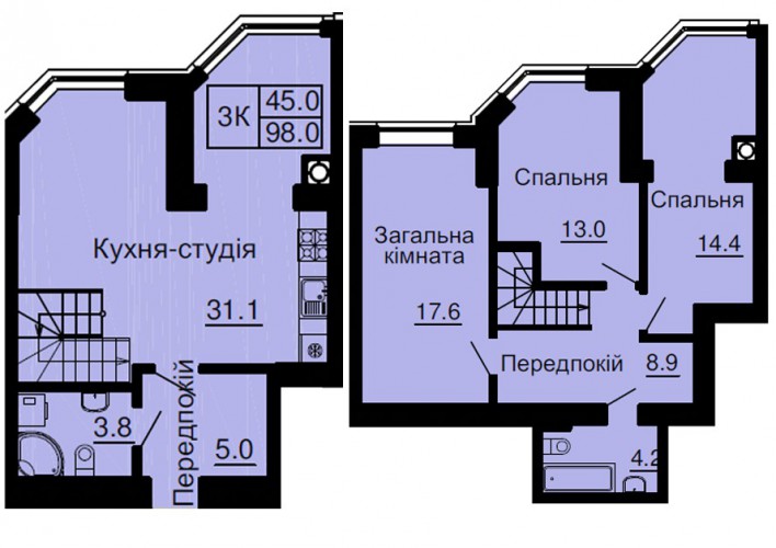 ДВОРІВНЕВА КВАРТИРА 98.00 М/КВ