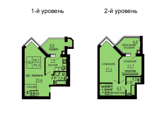 ДВОРІВНЕВА КВАРТИРА 95.30 М/КВ