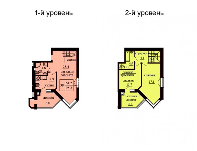 ДВОРІВНЕВА КВАРТИРА 95.30 М/КВ