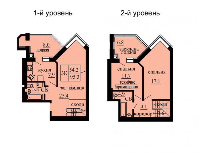 ДВОРІВНЕВА КВАРТИРА 95.30 М/КВ