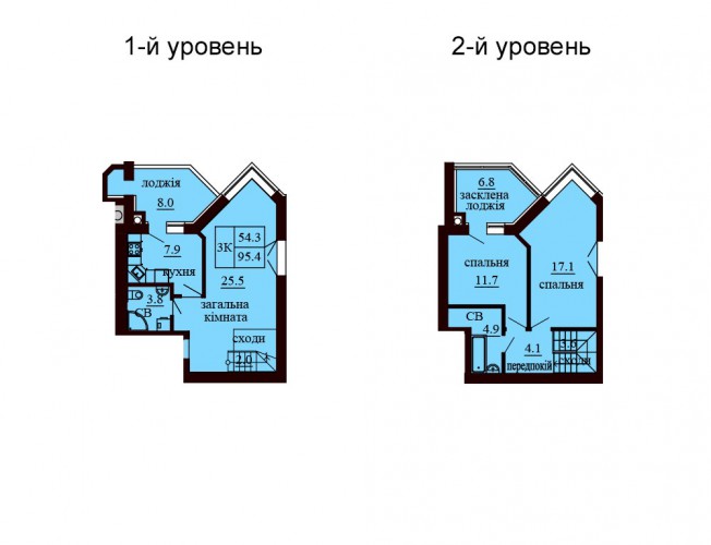 ДВОРІВНЕВА КВАРТИРА 95.40 М/КВ