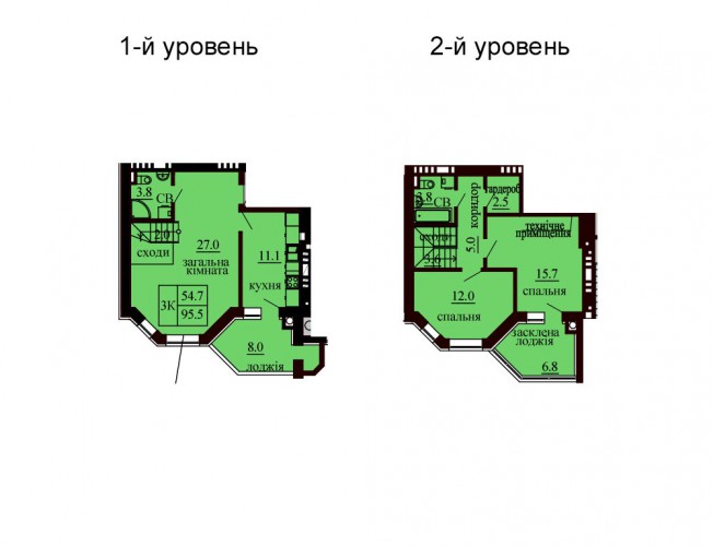 ДВОРІВНЕВА КВАРТИРА 95.50 М/КВ