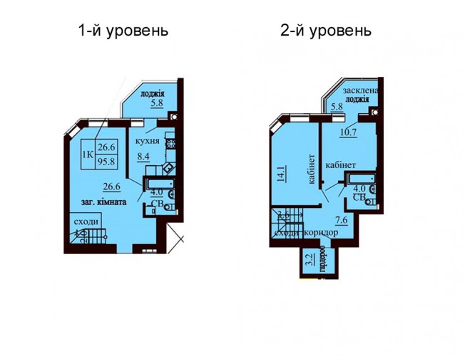 ДВОРІВНЕВА КВАРТИРА 95.80 М/КВ