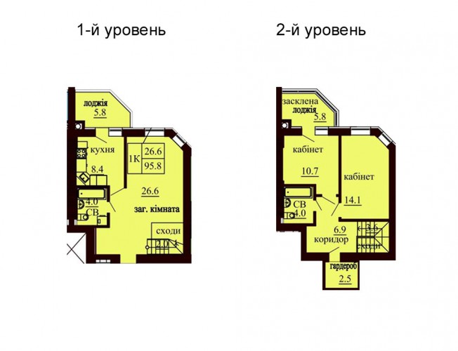 ДВОРІВНЕВА КВАРТИРА 95.80 М/КВ