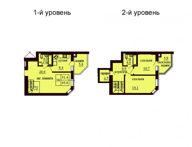 ДВОРІВНЕВА КВАРТИРА 95.80 М/КВ