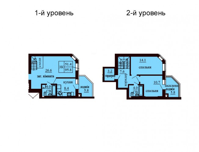 ДВОРІВНЕВА КВАРТИРА 95.80 М/КВ