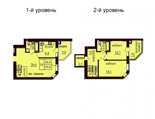 ДВОРІВНЕВА КВАРТИРА 95.80 М/КВ