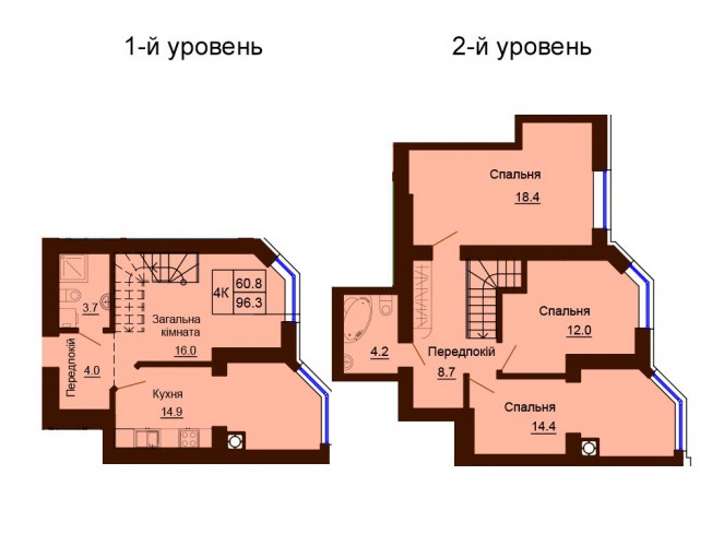 ДВОРІВНЕВА КВАРТИРА 96.30 М/КВ