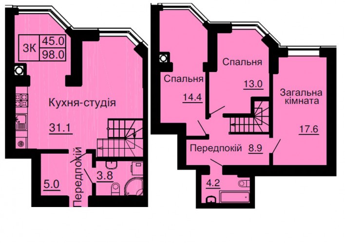 ДВОРІВНЕВА КВАРТИРА 98.00 М/КВ