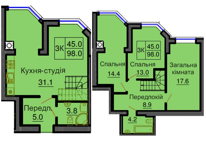 ДВОРІВНЕВА КВАРТИРА 98.00 М/КВ