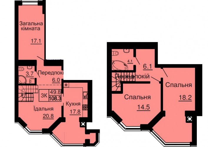 ДВОРІВНЕВА КВАРТИРА 108.30 М/КВ
