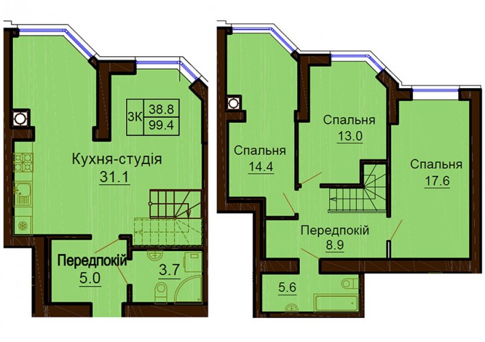 ДВОРІВНЕВА КВАРТИРА 99.40 М/КВ