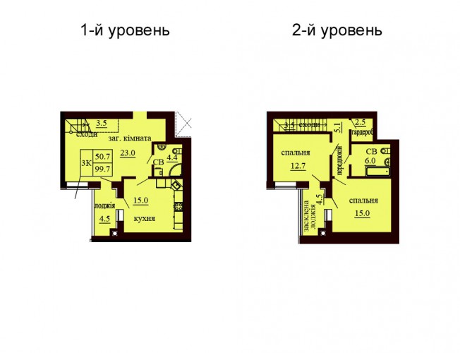 ДВОРІВНЕВА КВАРТИРА 99.70 М/КВ
