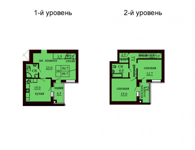 ДВОРІВНЕВА КВАРТИРА 99.70 М/КВ