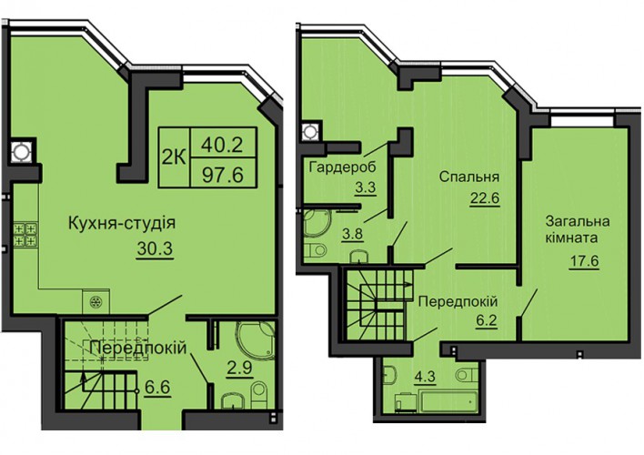 ДВОРІВНЕВА КВАРТИРА 97.60 М/КВ