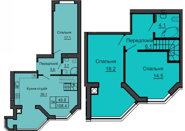 ДВОРІВНЕВА КВАРТИРА 108.40 М/КВ