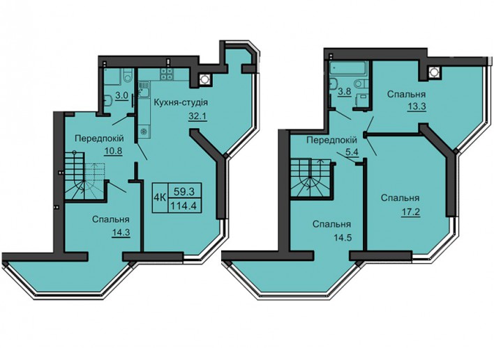 ДВОРІВНЕВА КВАРТИРА 114.40 М/КВ