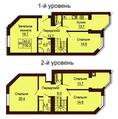 ДВОРІВНЕВА КВАРТИРА 130.20 М/КВ
