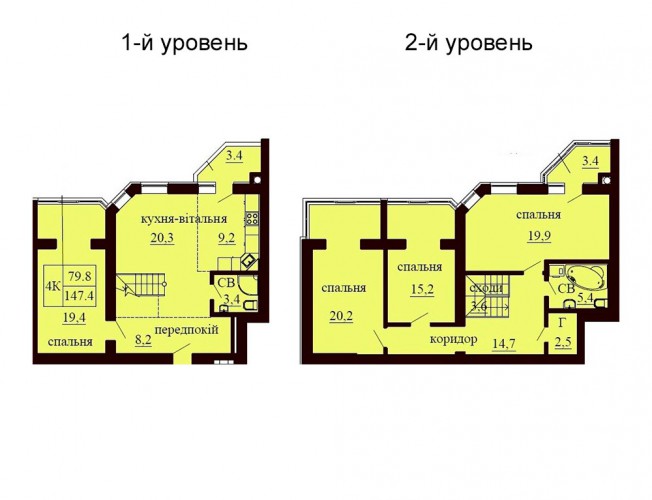 ДВОРІВНЕВА КВАРТИРА 147.40 М/КВ
