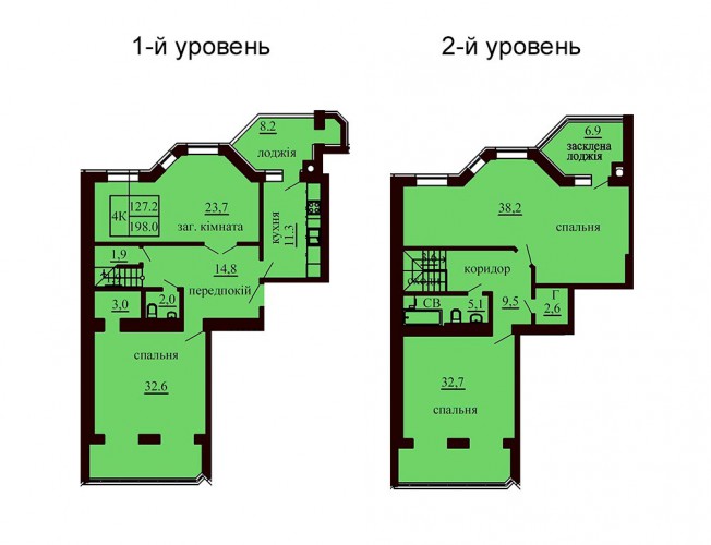 ДВОРІВНЕВА КВАРТИРА 198.00 М/КВ
