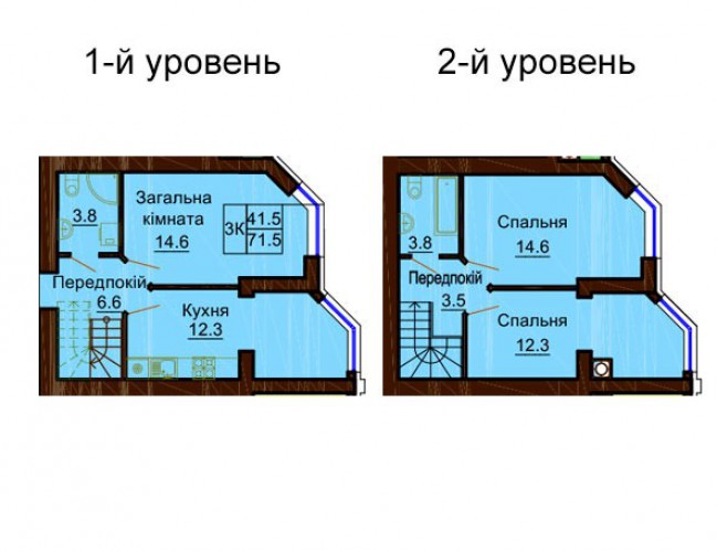 ДВОРІВНЕВА КВАРТИРА 71.50 М/КВ