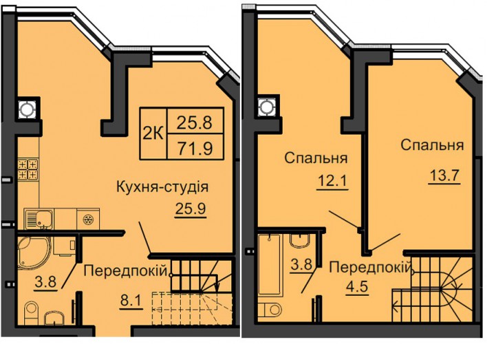 ДВОРІВНЕВА КВАРТИРА 71.90 М/КВ