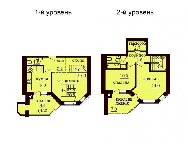 ДВОРІВНЕВА КВАРТИРА 86.90 М/КВ