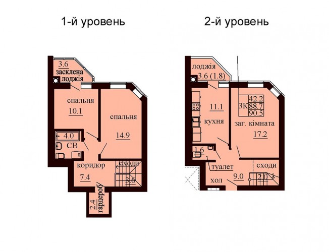 ДВОРІВНЕВА КВАРТИРА 90.50 М/КВ